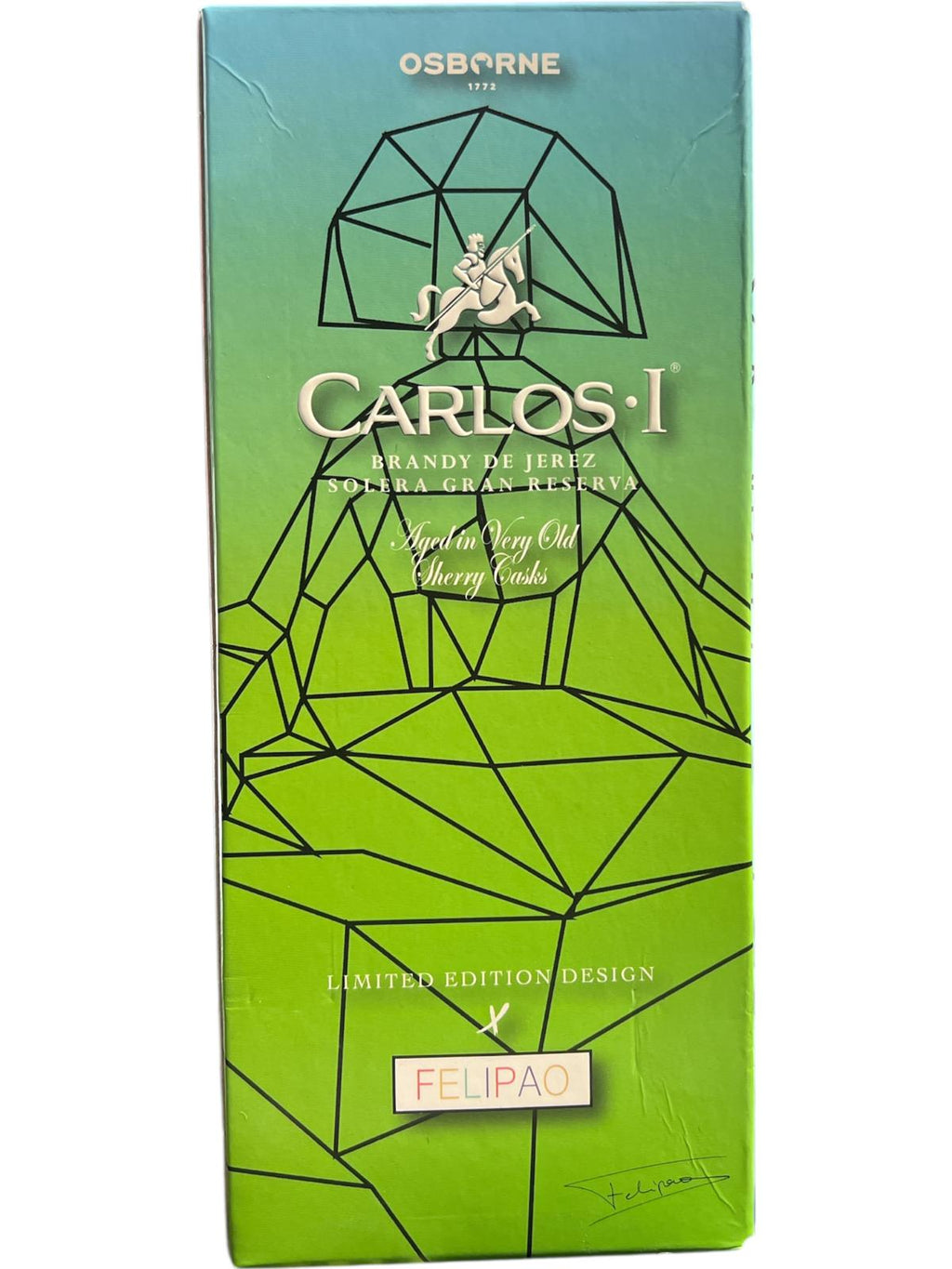 Carlos I Edición Especial es un brandy de Jerez Solera Gran Reserva elaborado con holandas de vino seleccionadas y envejecido pacientemente en el sistema tradicional de criaderas y soleras. Criado en botas de roble americano que previamente albergaron vinos de Jerez, este brandy rinde homenaje al legado histórico y artesanal de las bodegas Osborne.