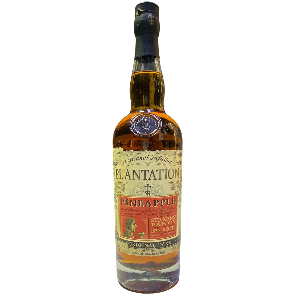 El Plantation Stiggins’ Fancy Pineapple Rum es uno de los rones infusionados más reconocidos del mundo, creado por la famosa casa Maison Ferrand. Inspirado en recetas del siglo XIX, este ron se elabora macerando la pulpa de piñas maduras de la variedad Victoria en ron Plantation 3 Stars y destilando por separado la cáscara de la fruta junto con ron añejo Plantation Original Dark. Posteriormente, ambas preparaciones se mezclan y envejecen nuevamente en barricas de roble, logrando un triple proceso de sabor y maduración.